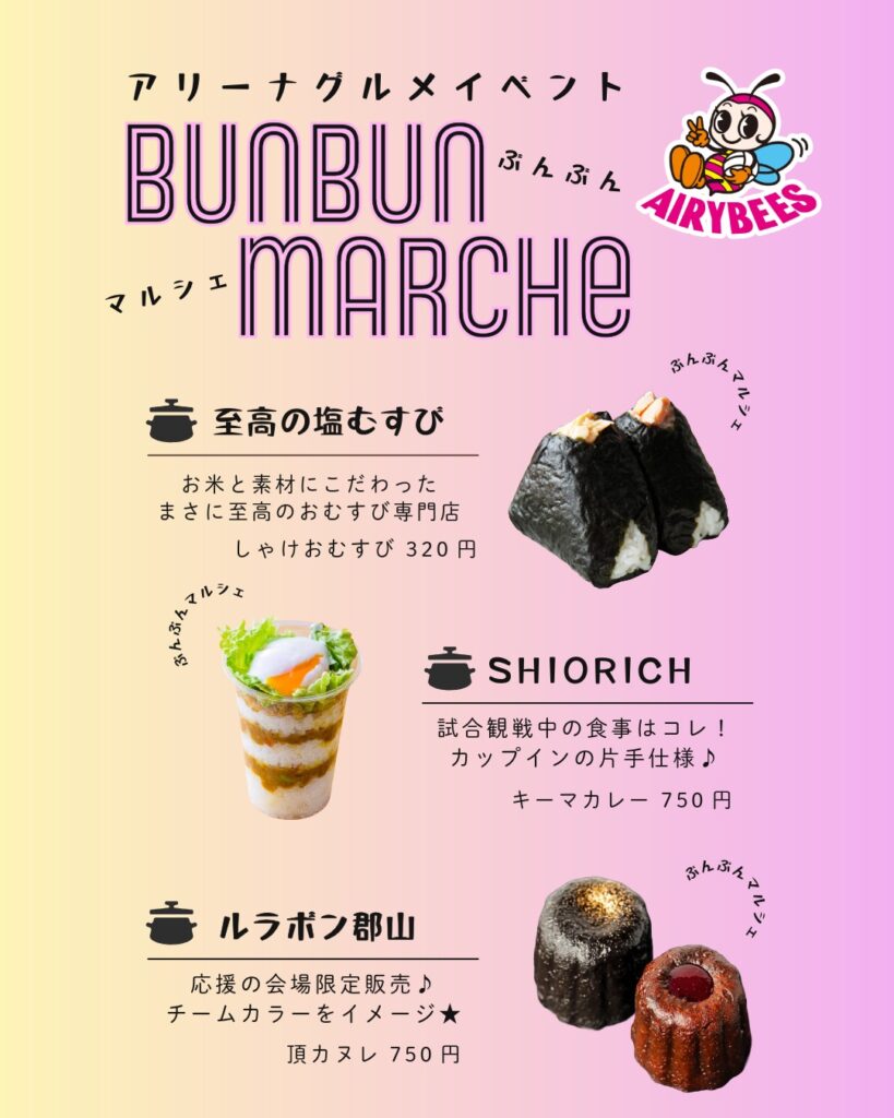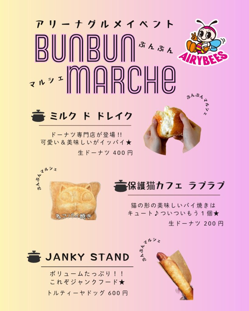 アリーナグルメイベント《ぶんぶんマルシェ》にも、ぜひお立ち寄りください!