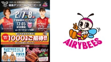 DENSOエアリービーズ AIRYBEES 2025-26SVL 0207 0208 DENSO AIRYBEES『2025-26 大同生命SVL 02/07・02/08』AIRYBEES2025-2056大同生命SVリーグ2026年のホーム戦が「宝来屋ボンズアリーナ/郡山市」にて2/... 2026.02.02 DENSOエアリービーズイベント・マルシェ郡山市
